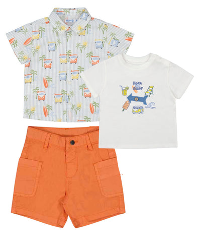 Set 3 piezas Camisa estampada 1112 tablas, camiseta 1064 y bermuda 1245 coral