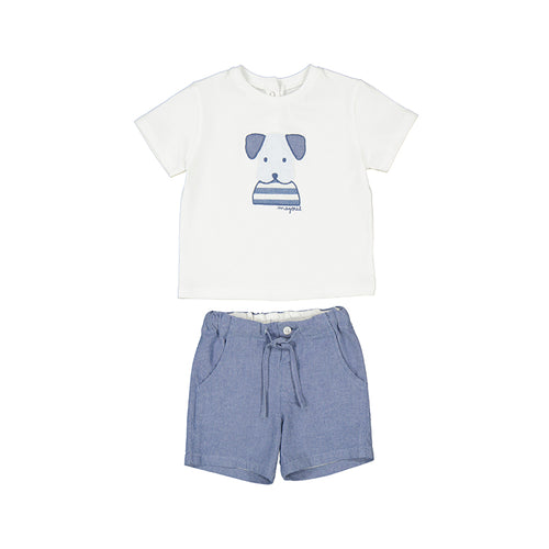 Set 3 piezas Camisa estampada 1112 animalitos, camiseta 1053 y bermuda 207 salvia