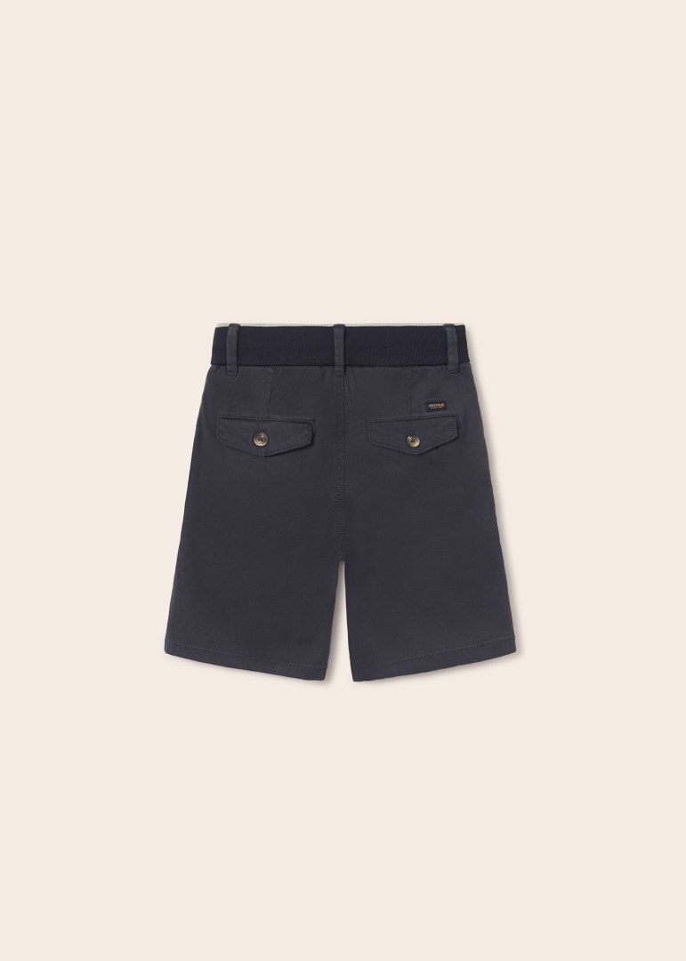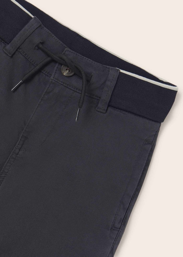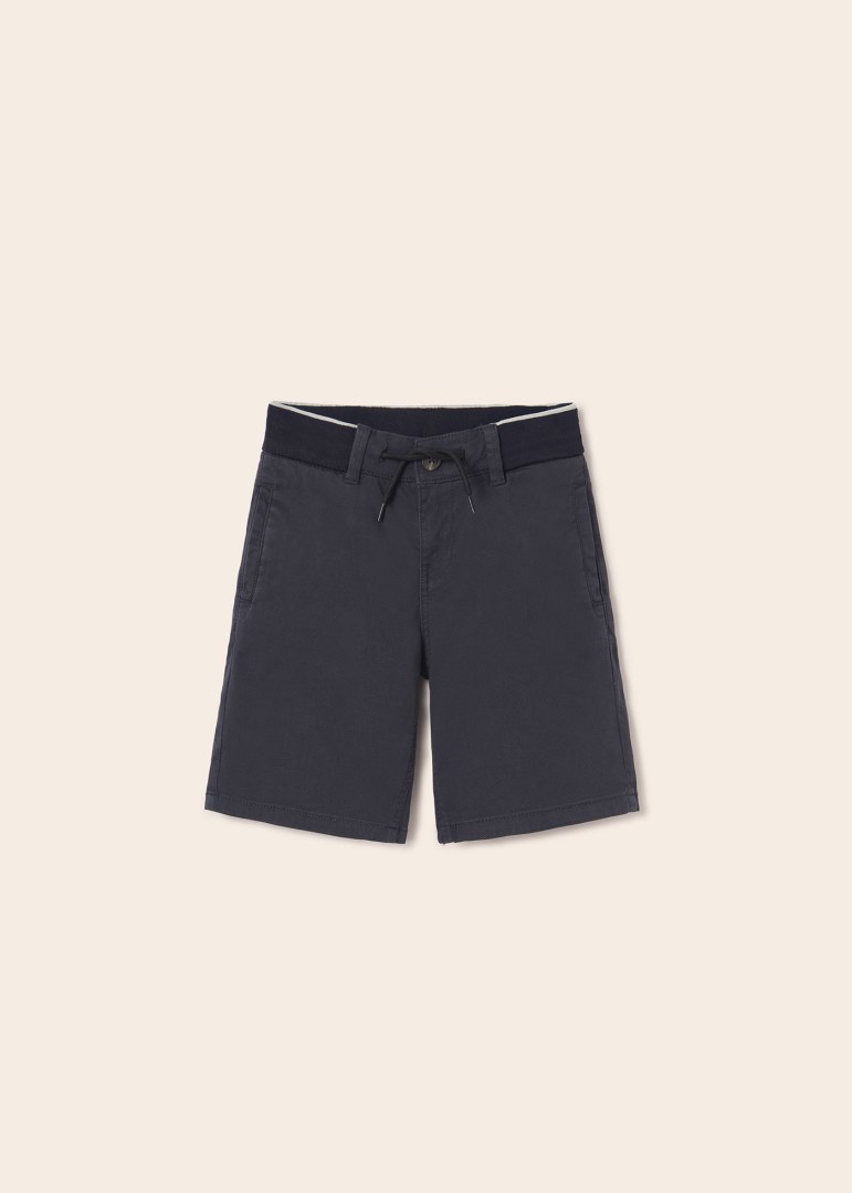 Prenda ECOFRIENDS, contiene algodón sostenible. Pantalón de tipo bermuda para chico. Cierre con cremallera y botón. Cintura elástica con cordón ajustable. Bolsillos funcionales en el delantero y en la parte trasera de la prenda.