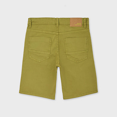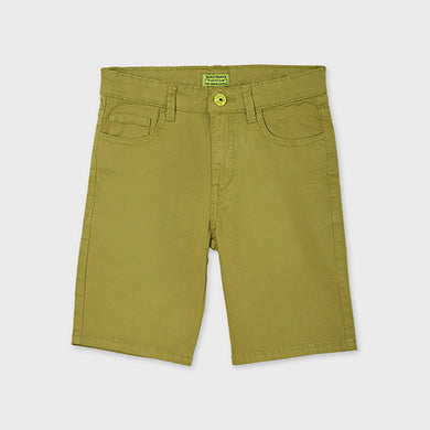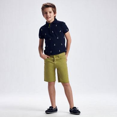 Pantalón corto de tipo bermuda para chico. Cintura con goma elástica y cierre con cremallera y botón. Cómodo tejido de sarga de gran resistencia. Diseño con múltiples bolsillos. Este artículo presenta un tintado especial que hace que su acabado pueda no ser uniforme o que el color pueda variar con los lavados.