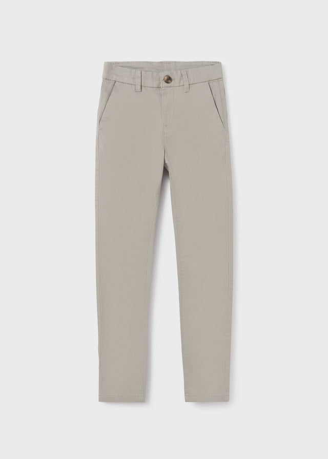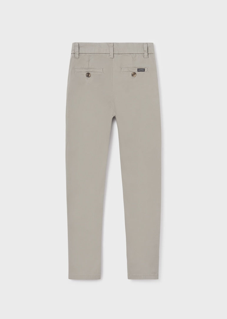 Prenda ECOFRIENDS, contiene algodón sostenible. Pantalón largo para chico de tipo chino y corte ajustado a la pierna para definir la silueta sin perder elegancia. Cierre con cremallera y botón. Bolsillos funcionales en el delantero y en la parte trasera de la prenda.