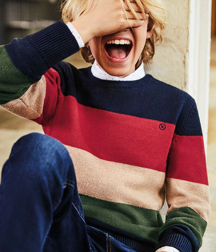 . Cuello redondo. Tejido de punto tricotosa fino de tacto suave y agradable. Motivo de rayas.